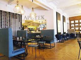 This restaurant has a variety of wines and foods , but la creme de la creme is their around the world menu. This menu offers 5 entrees, one desert and 5 different wines to all be paired with each dish.